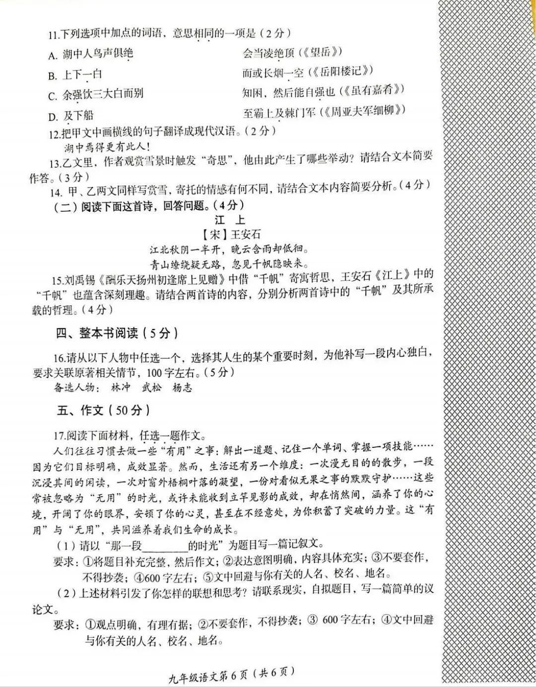 应读者要求,本号开设【试卷】一 栏。收集初中语文试卷,为语文学习提供参考。