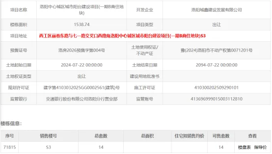 位于西工区丽春东路与七一路交叉口西南角的洛阳中心城区城市阳台建设项目(一期B商住地块),52、53号楼30套新房源获批。据了解,该项目为新楼盘晟景·玖号院。