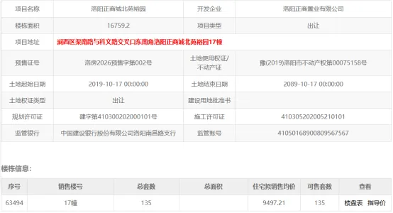 洛阳正商城北苑裕园15、17号楼获批预售,释放可售房源177套。