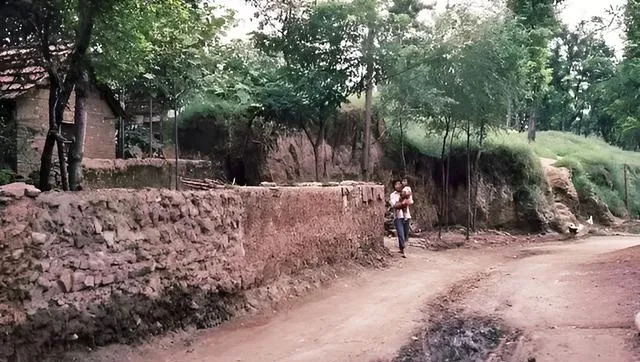 这堵墙是夯土,表面开了裂,草从缝里钻出来,女人抱着孩子从院子里出来,门框刷着暗红的漆,爷爷说以前这边夜里安静得很,风一吹,草哗啦啦像在说古话。