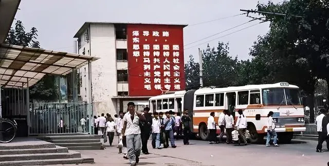 图中广场上坐着的人多,站着的人也多,肩上的蛇皮袋旧得发亮,站牌上密密写的是线路和时间,爸爸说那时到郑州办事先找站牌,排队是排队,心里却踏实,南来北往全在这块地儿交汇。