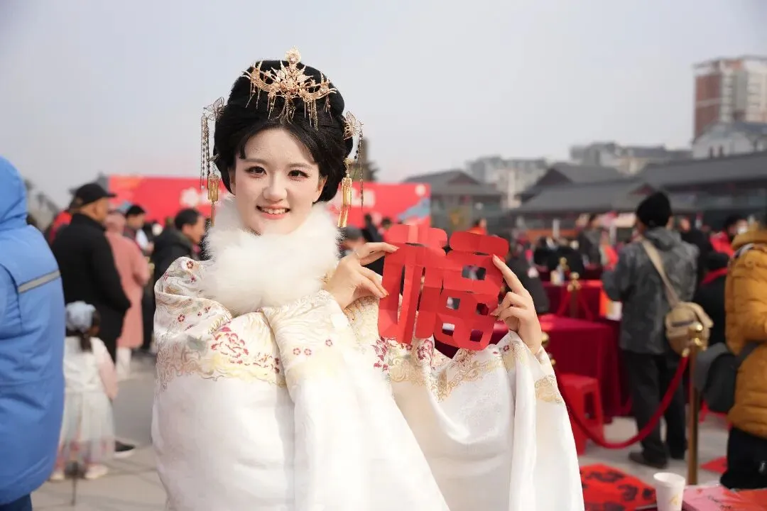 文明市集以烟火气聚拢人气,以文明风浸润人心,着力挖掘与活化洛阳优秀传统文化中的文明基因,让市民在沉浸式体验中感受传统文化的魅力,自觉践行文明新风。在非遗剪纸、非遗糖塑等非遗展示区,非遗传承人通过非遗作品的展示与义卖,传承和推广非物质文化遗产;在爱心助农区域,公益团队、周边商户展示具有洛阳特色的年夜饭等特色小吃,供市民免费品尝,在营造浓厚“年味儿”氛围的同时,汇聚社会爱心,传递社会正能量;“新年寄语”互动区,市民在寄语卡片上书写对新一年的祝福、期盼或文明承诺,让真挚心愿与文明风尚伴随祝福传递,共添节日温情;在银行送福区,工作人员宣传金融知识,守护居民“钱袋子”。此外,还有50名书法家受邀为市民写春联、送福字,借助春联传递喜庆与文明,送上新年美好祝福。