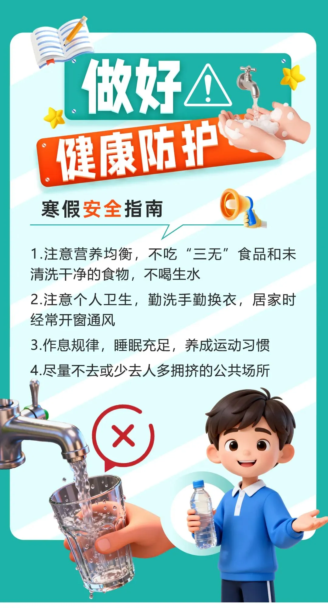 寒假期间,孩子的安全与成长需家校共守。恳请您切实履行监护职责,密切关注孩子的身心状态,发现问题及时与班主任沟通。也欢迎您随时反馈意见,让我们携手护航。
