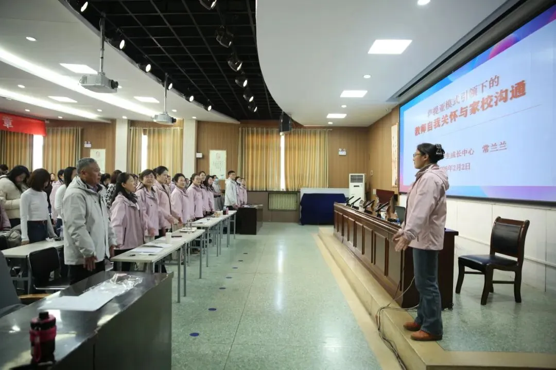 为进一步关注教师心理健康,提升教师自我关怀能力与家校沟通技巧,筑牢教育工作者身心防线,2026年2月2日下午,洛阳市东升第一小学教育集团组织全体教师开展了以“萨提亚模式引领下的教师自我关怀与家校沟通”为主题的心理健康专题培训,让教师们在专业引导中汲取力量,赋能自身与教育教学工作。
