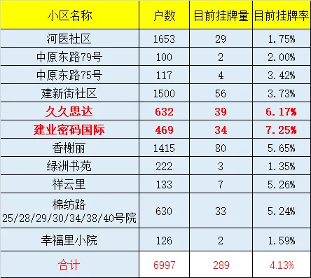 相比之下,同样是郑州第一梯队的省实验中学学区,区内约有11500套房产,挂牌量却高达975套,挂牌率接近8.5%。