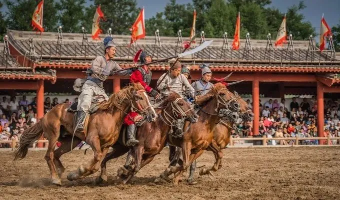 《岳飞枪挑小梁王》在校场观看震撼人心的马术表演。岳飞武举考试中发生的一系列故事,真枪实战让人血脉喷张。