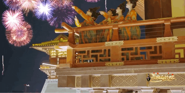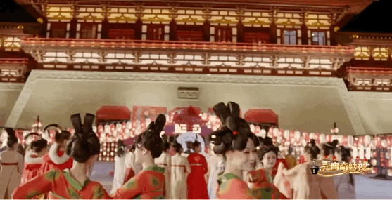 大气磅礴的盛唐建筑上,万家灯火将黑夜点亮成了白昼,市井街头更是热闹精彩。隋炀帝武接见万国来朝,则天曾在此登基称帝,唐玄宗接见日本遣唐使……