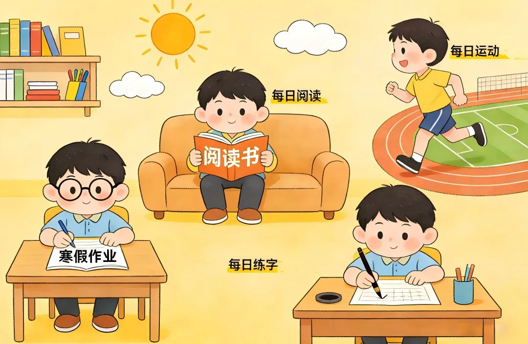3.帮助孩子制定合理的寒假计划,兼顾学习与休息,监督孩子保质保量完成作业,培养自主学习习惯;鼓励孩子多读书、读好书,开展亲子共读,增长知识、开阔视野。