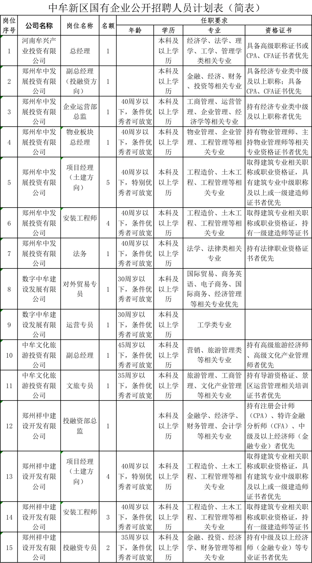 中牟人才集团有限公司(下文简称中牟人才集团)受托为中牟新区国有企业面向社会公开招聘工作人员。