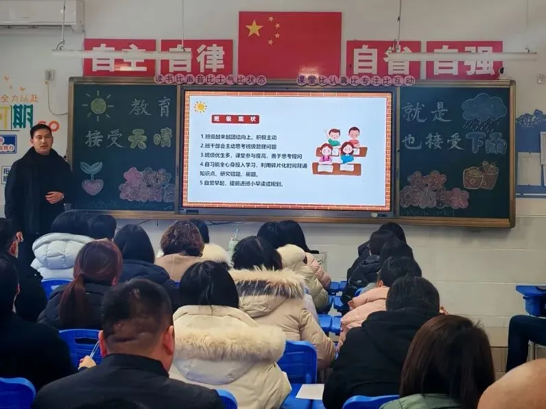 各班班主任作为班级成长的“第一责任人”,通过丰富的素材——从课堂瞬间到活动剪影,从学业轨迹到品格闪光点——全景式地汇报了班级一学期来的发展。老师们不仅分析了班级整体的学风与状态,更针对假期生活的科学规划、自主学习能力的培养、亲子沟通的优化等议题,与家长交换了意见,共同谋划接下来的成长节奏。