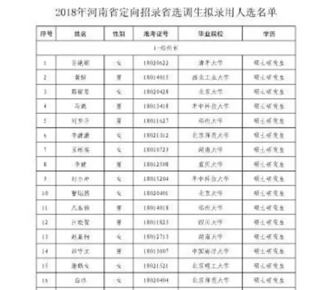 以郑州市为例,2018年共招录定向选调生32位(清北还另有1批),