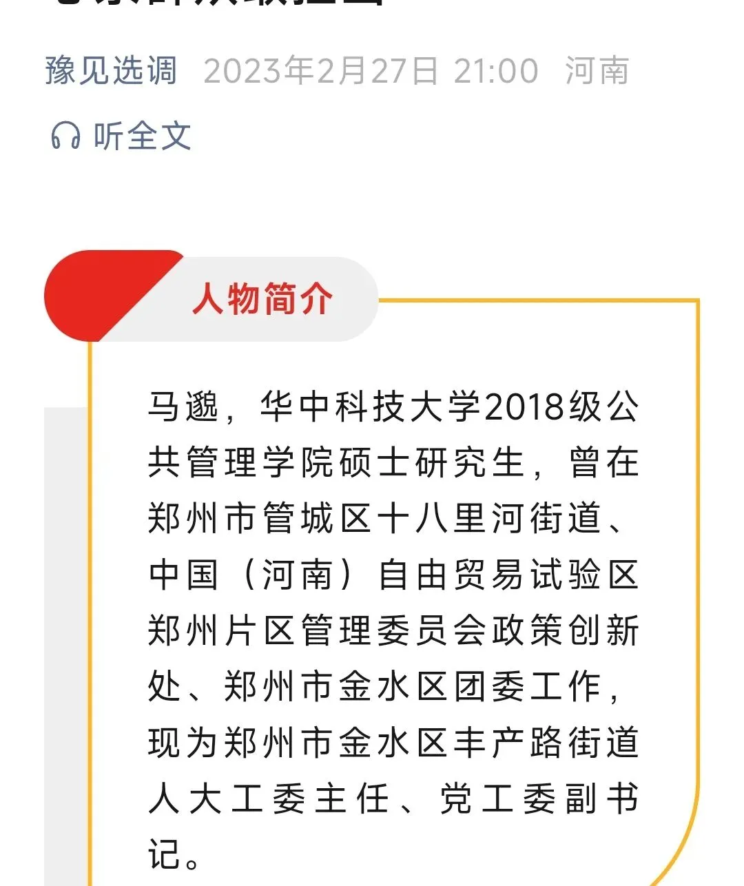 第4位马同志来自华中科技大学,该同志已任郑州市金水区花园路街道办事处主任(正科级,2026年1月信息),