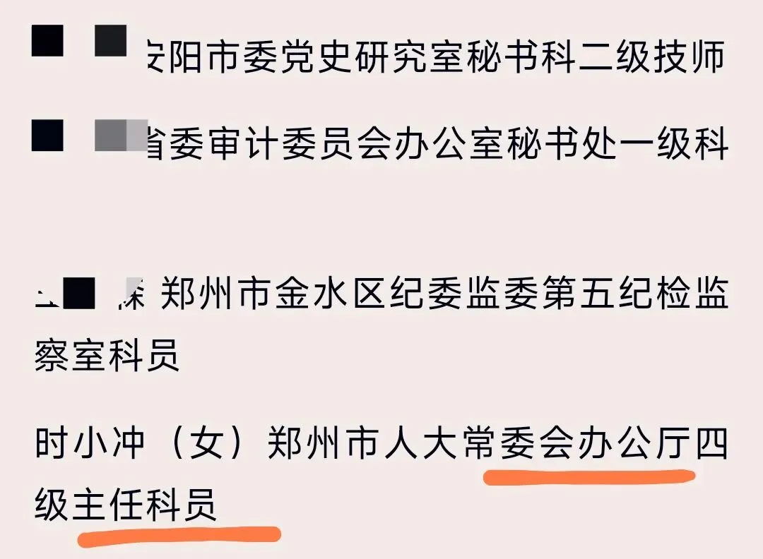 第9位时女士来自华中科技大学,该同志已任郑州市人大常委会办公厅四级主任科员(副科级,2020年12月信息),