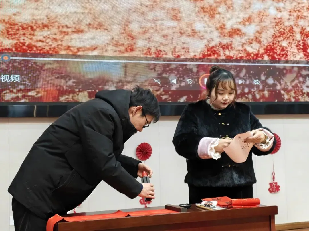 朱延国与吉璐老师现场展示书法与剪纸技艺,刚劲有力的对联与精巧细腻的剪纸作品,尽显教师队伍的多才多艺与匠心传承,赢得全场阵阵掌声。