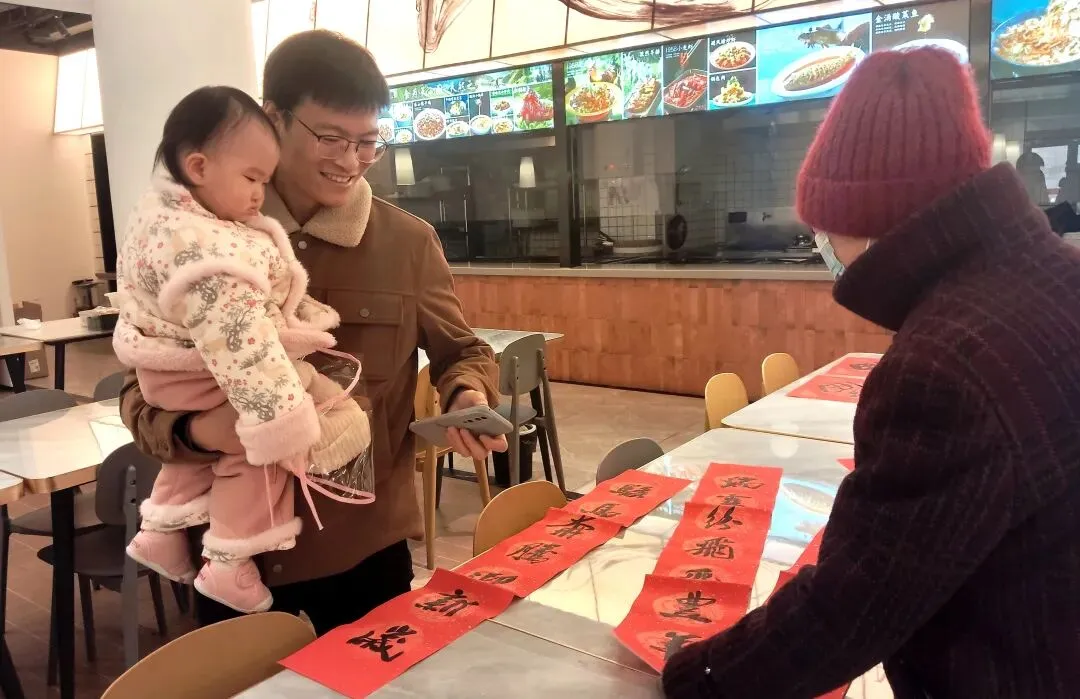 活动现场,乐曲悠扬,翰墨飘香。书法家凝神运笔、挥毫泼墨,行、隶、楷等多种书体各显神韵,一副副对仗工整、寓意吉祥的春联,一个个饱满厚重、喜庆祥和的“福”字跃然红笺。市民们或驻足品鉴,或有序等候,拿到心仪的春联后,脸上尽是幸福的笑意。“手写春联带着笔墨温度,比印刷品更有地道年味儿。”一位带着孩子参与活动的市民说道,要将这份墨香祝福贴于家门,让新春更添传统仪式感。