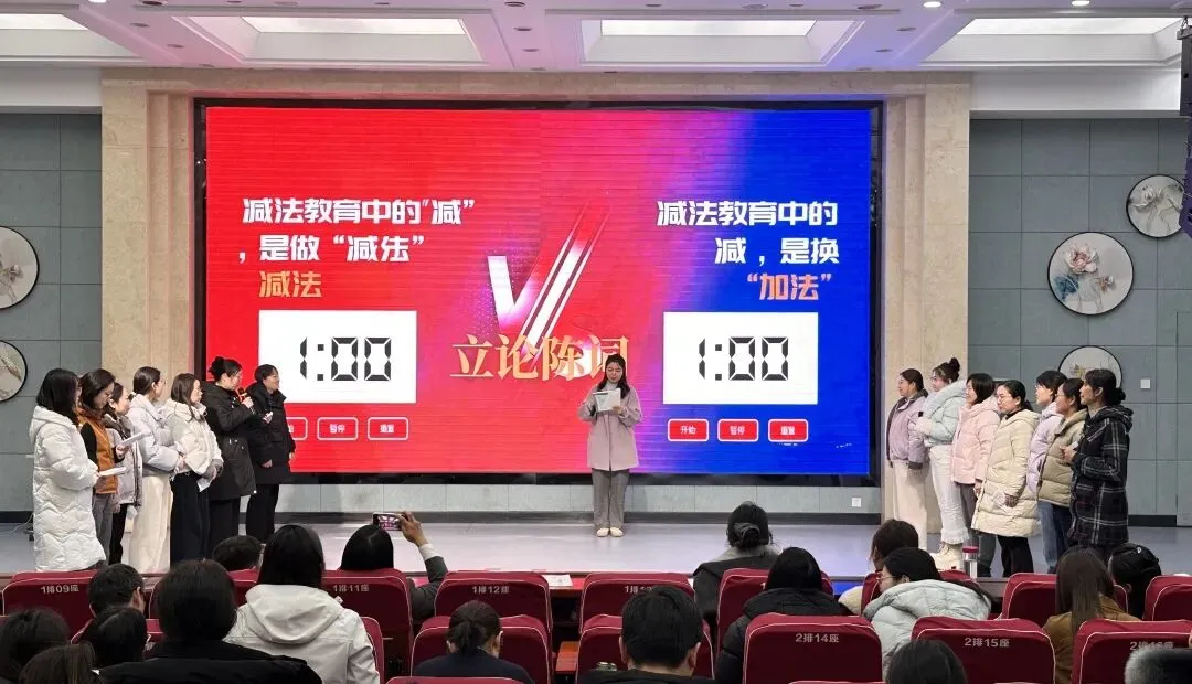 七个组围绕“减法实践与未来构想”展开分享。从低段对“减法”内涵的探讨,到中学段面对现实升学压力的思辨;从对“无围墙学校”的设想,到教师角色转型的辨析……情景剧、辩论、听证会、诗歌朗诵,在这场多元表达中,教育的理性与温度交织共鸣。没有标准答案,只有真诚发问;不求完美呈现,但求真实表达。