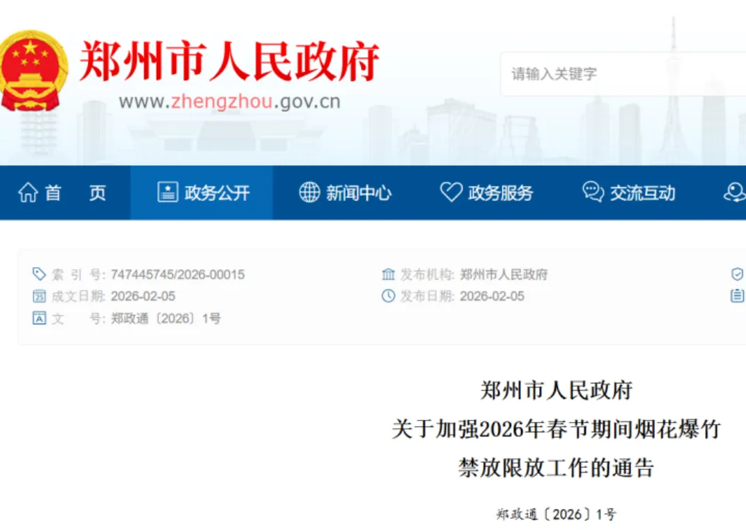 刚刷到个大消息,我激动得差点从沙发上蹦起来:郑州市政府正式发布2026年春节烟花爆竹燃放规定,今年过年,咱老百姓终于可以合法、合规地放炮了! 💥