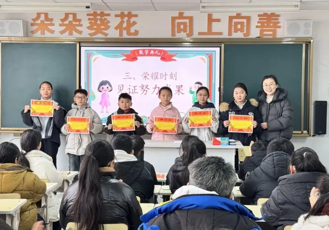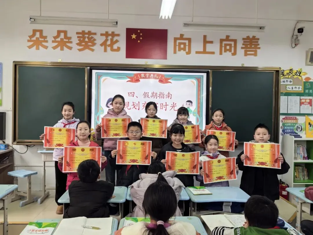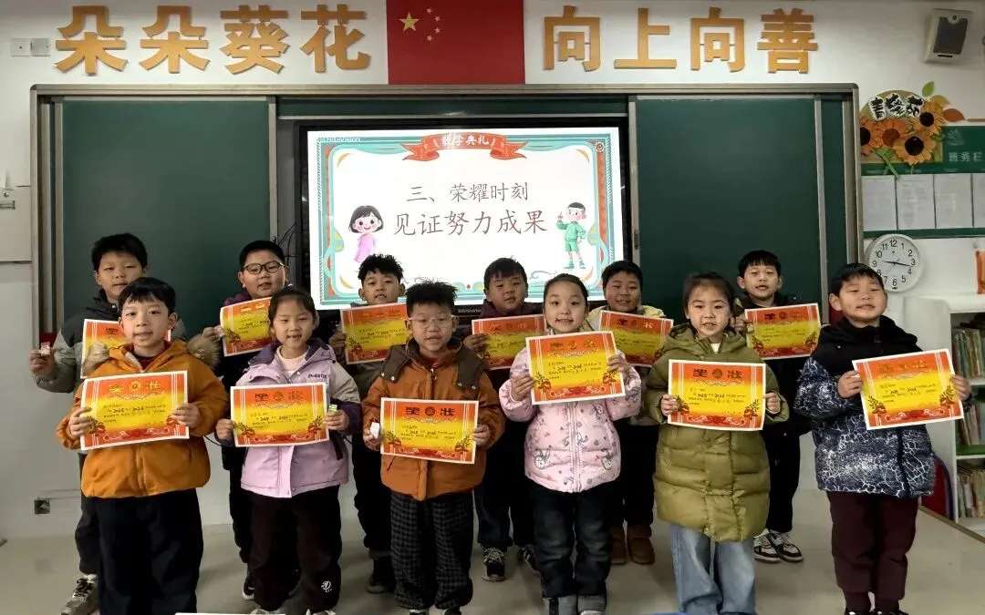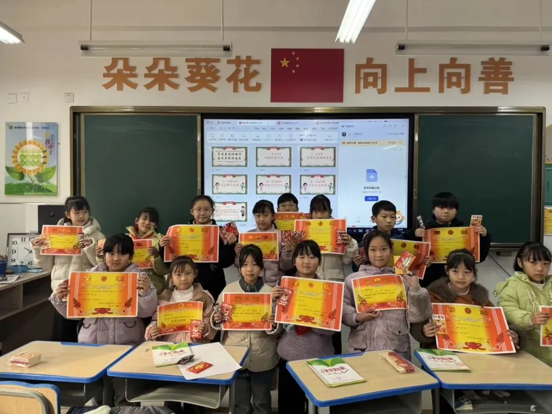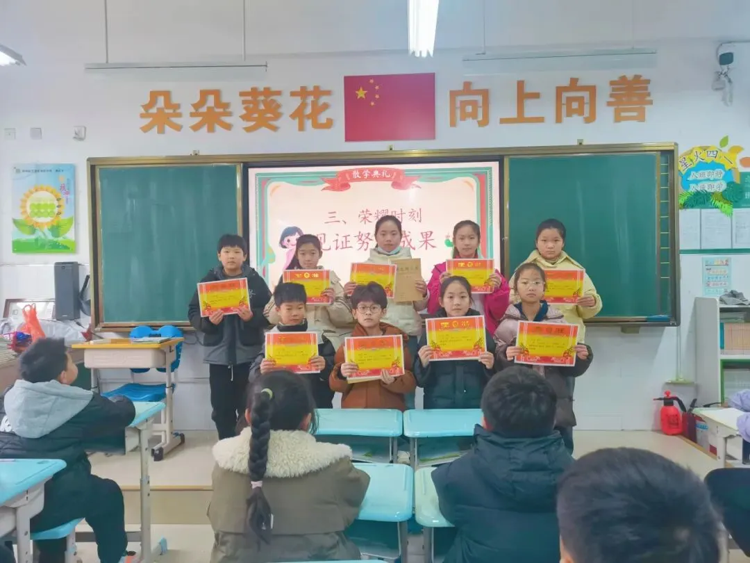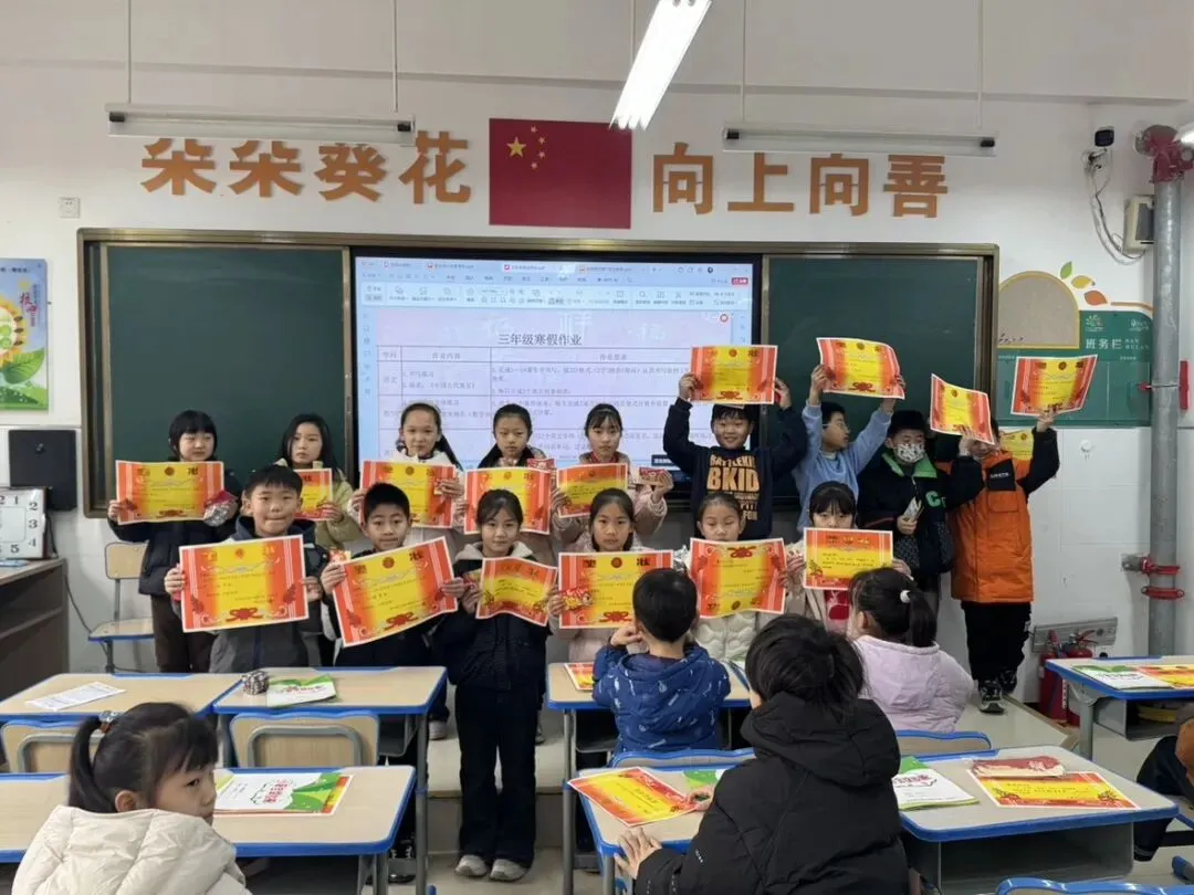 各班积极开展散学典礼啦!教室里满是欢声笑语,老师们盘点学期收获、表彰优秀,孩子们捧着小奖励超开心~