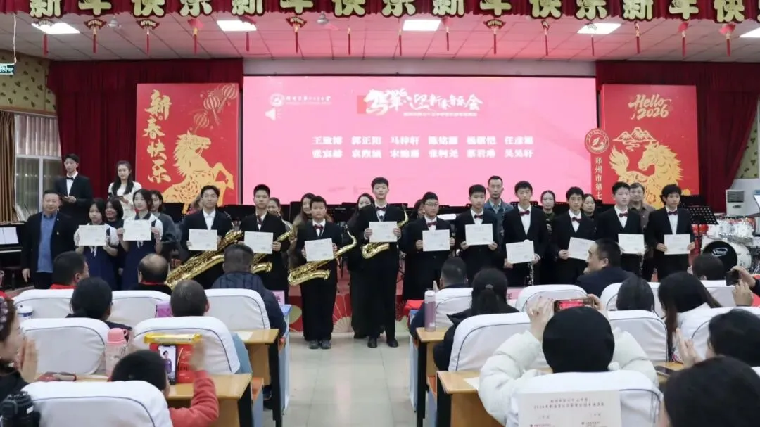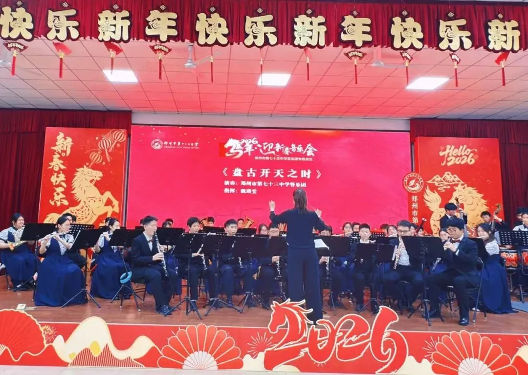 2月3日,郑州市第七十三中学2026年新年音乐会暨管乐团汇报演出温情启幕。学校领导班子、家长代表、特邀嘉宾与师生们欢聚一堂,共赴迎新视听盛宴,用艺术之韵奏响青春华章。