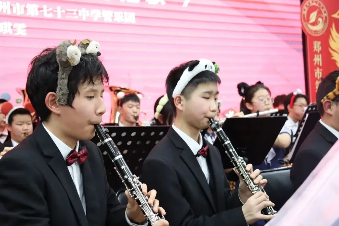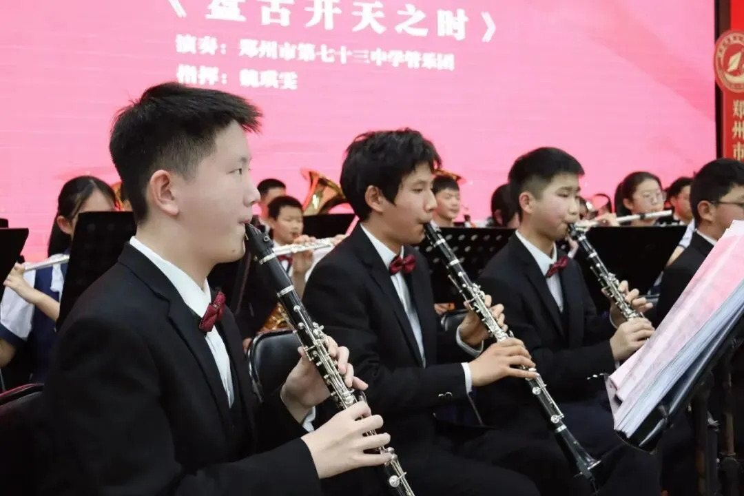 作为学校重点培育的艺术品牌,七十三中管乐团自2015年成立以来,已走过十余年辉煌历程:两度荣获全国“示范乐团”称号,拿下“聂耳杯”全国金奖,跻身全国示范性高水平艺术团行列,更连年向郑州外国语学校、河南省实验中学、郑州一中等顶尖高中输送优秀学子。沉甸甸的荣誉,是师生们用汗水浇灌的硕果,更是七十三中学子“不负韶华、勇攀高峰”的生动注脚。