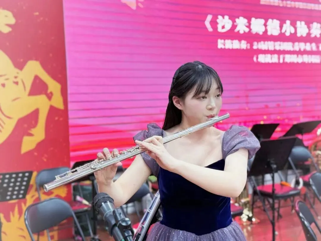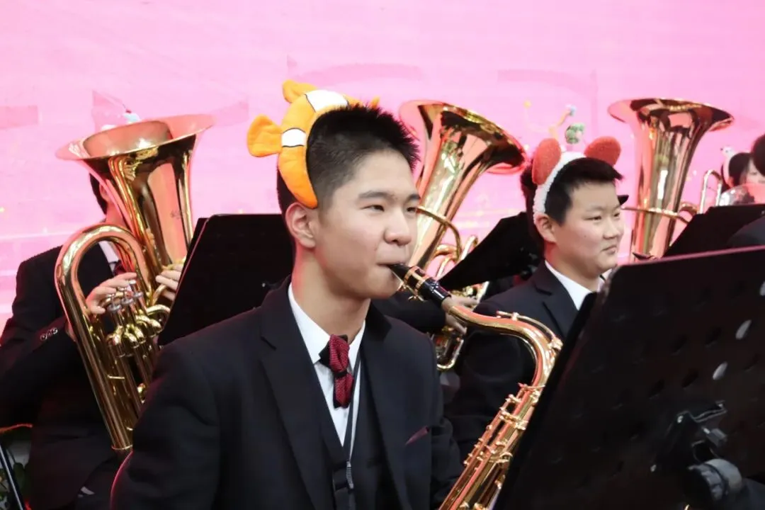 音乐会分为上下半场,节目精彩纷呈,高潮迭起。管乐团率先以《盘古开天之时》的恢弘旋律拉开序幕,《月桂满香圆舞曲》的灵动浪漫、《小美人鱼主题曲》的悠扬婉转,带领观众穿梭于古今与奇幻之间;两位优秀毕业生重返母校献艺,长笛独奏《沙米娜德小协奏曲》尽显古典韵味,马林巴独奏《光明》以精湛技艺赢得满堂喝彩,为学弟学妹们树立了榜样。中场的新年成语猜谜互动环节,观众踊跃抢答,欢声笑语中弥漫着浓浓的年味儿。