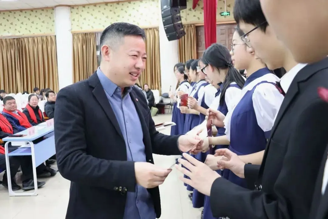 校长王磊为在2025年全国管乐比赛中获奖的优秀学子及家长代表颁奖。