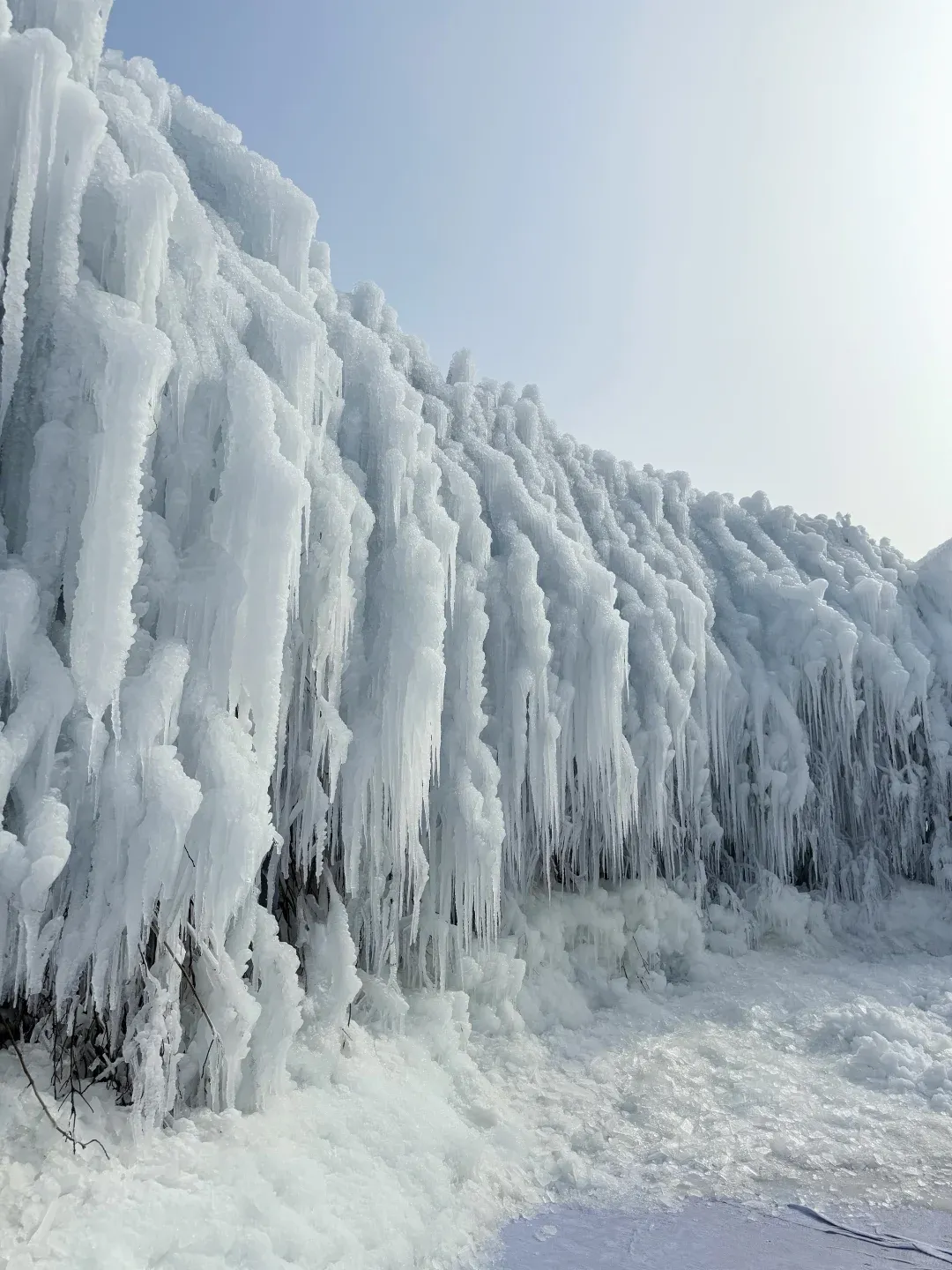 太行冰挂群沿着悬崖垂落,百米冰挂晶莹剔透,阳光穿过时像巨型水晶帘,美到让人移不开眼;