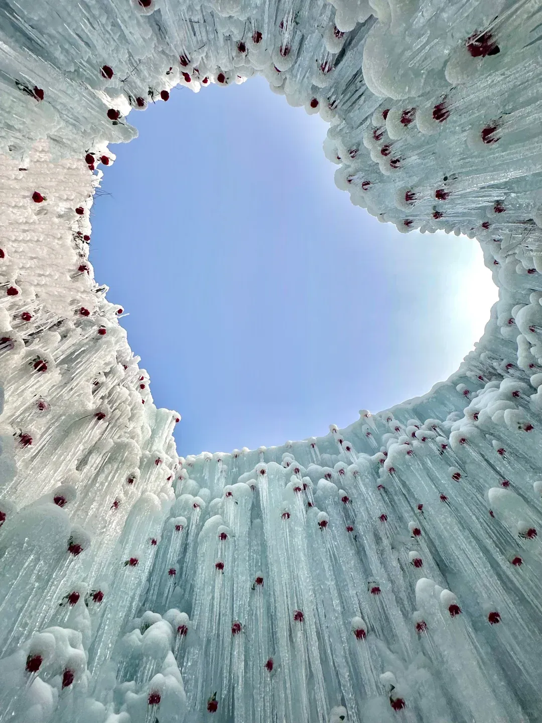 还有太行冰心,冰封的玫瑰冰挂布满四周,抬头就是心形天空,仙气十足;