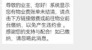 年底了,物业疯狂的催缴物业费,微信里每天一次。