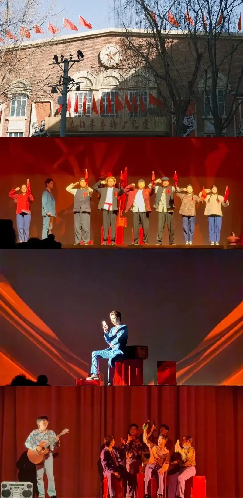 教室前面有熟悉的红旗,和毛主席的题词“好好学习,天天向上”。操场上,文艺委员会为“七一”绘制着纪念黑板报。