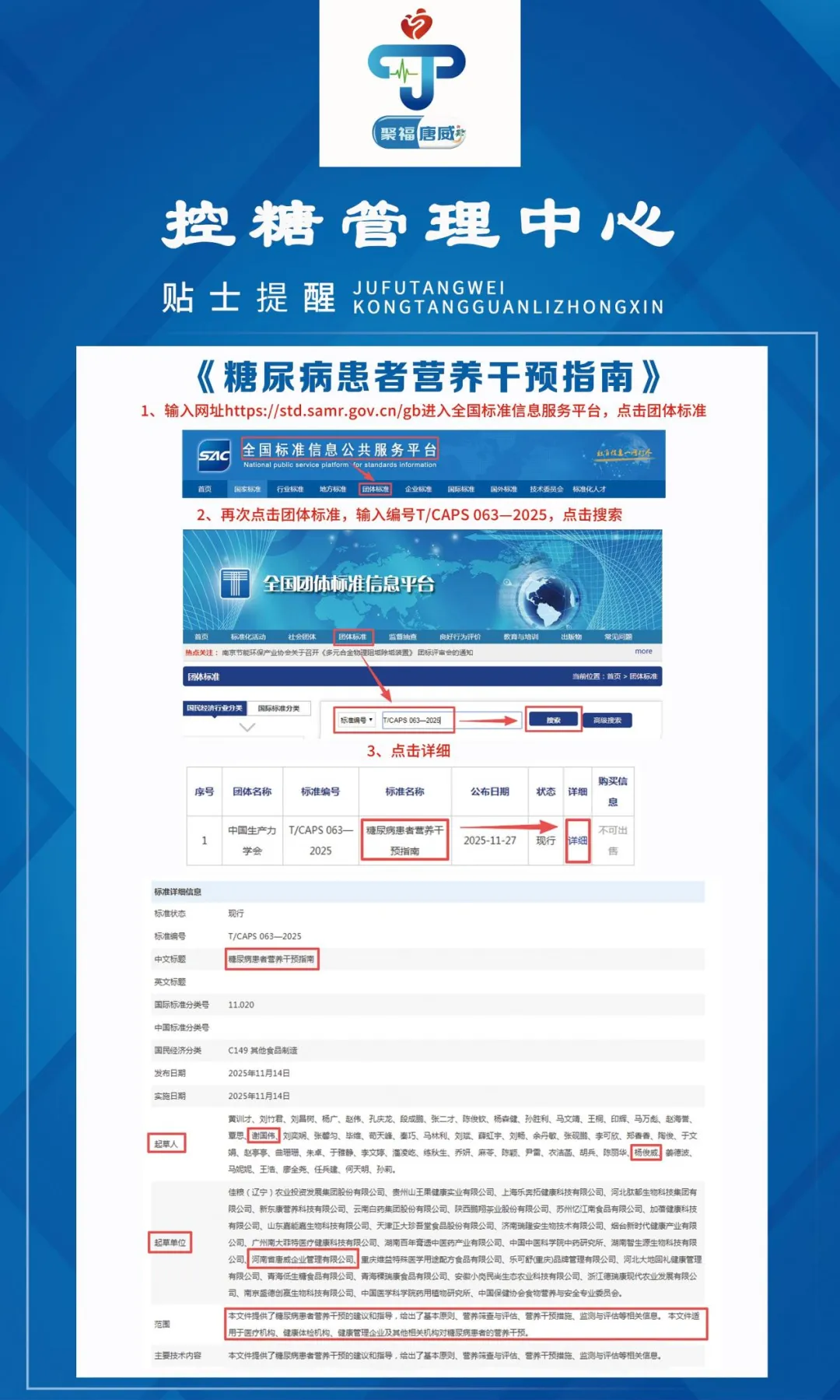 在获得国家、糖友认可的同时,唐威平台积极参与国家关于糖尿病患者各项标准的制订,并成为现行《糖尿病患者营养干预指南》团体标准的起草和制订单位。同时,唐威平台关于“医疗卫生资源区域配置策略研究”课题被收录于《中国期刊网》。