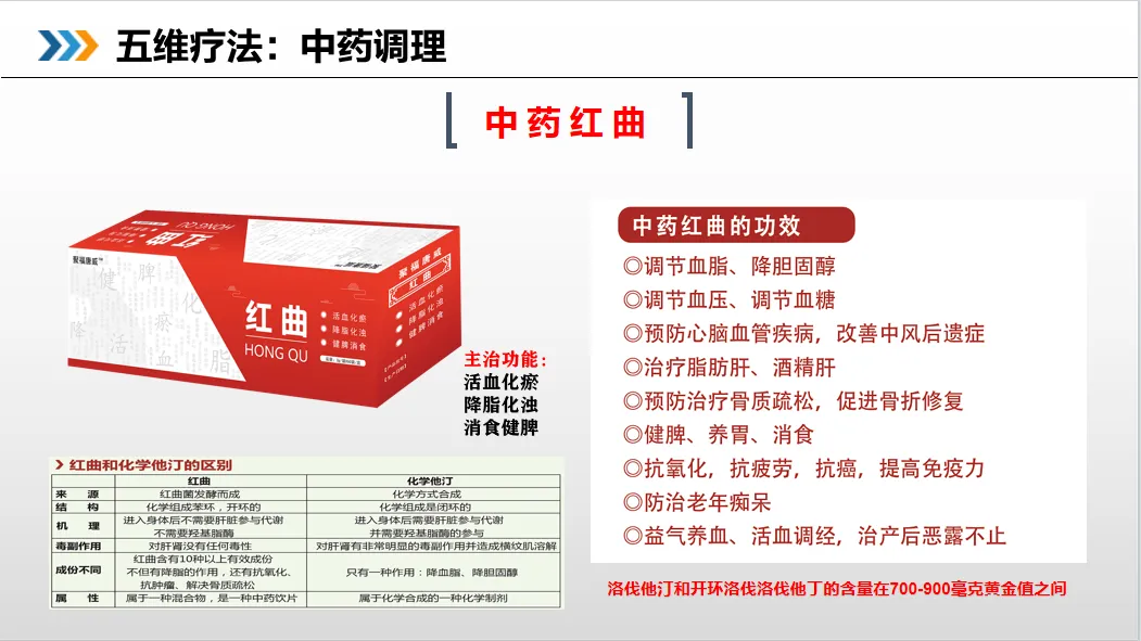 红曲产品具有活血化瘀、降脂化浊、消食健脾的功效,获中国发明专利(ZL201410118527.4)。唐威平台红曲采用传统古法小罐固态发酵,水溶性设计使其服用方便,开水冲服即可。其无桔霉素制备技术确保安全,Monacolin K等天然成分含量稳定,避免传统红曲的黄曲霉素风险。