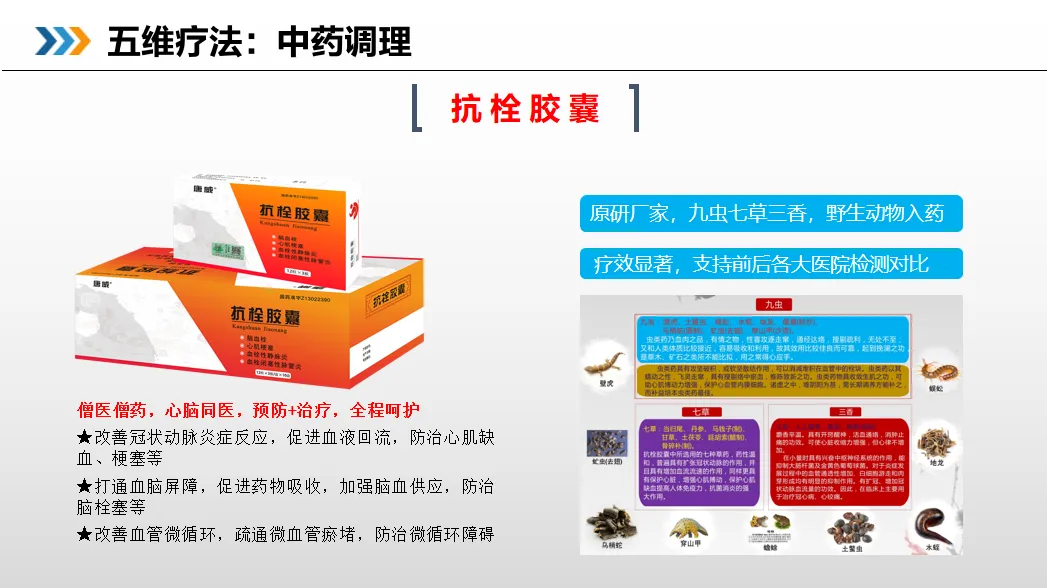 作为原研产品,抗栓胶囊以僧医僧药为灵感,融合九虫七草三香等天然成分,专为心脑血管健康设计。它能改善冠状动脉炎症、促进血液回流,并打通血脑屏障,全程呵护血管微循环,防治心肌缺血和脑栓塞。