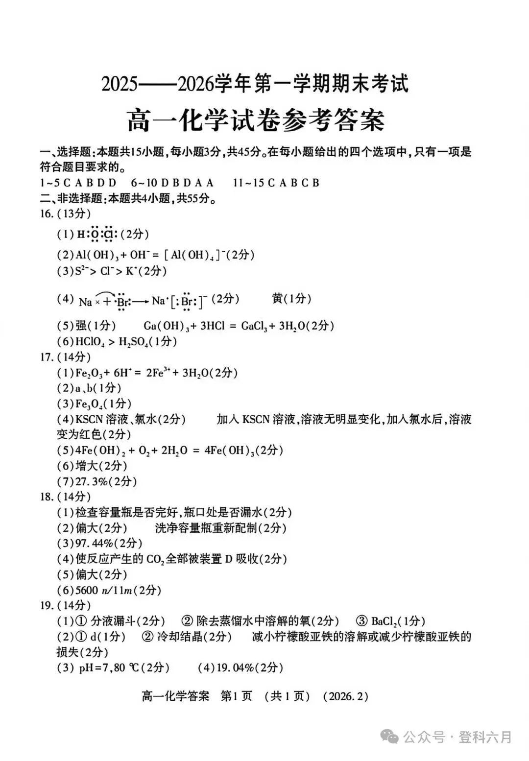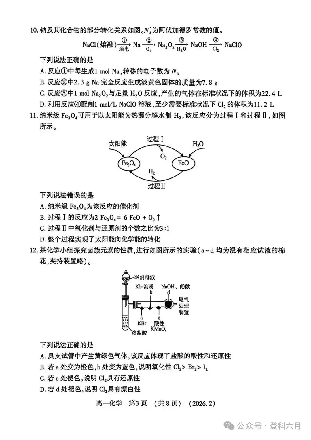 洛阳2025-2026上学期高一化学期末试卷