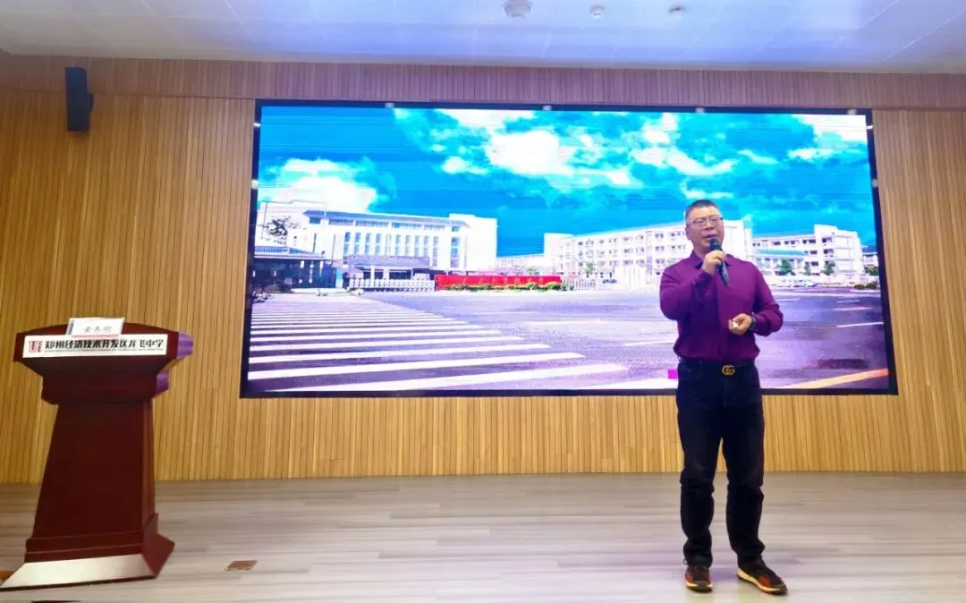 郑州经济技术开发区龙飞中学校长郭青锋发表致辞