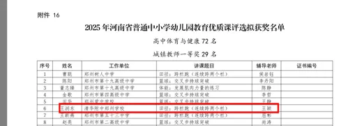 近日,2025年河南省普通中小学幼儿园教育优质课评选结果揭晓,清华附中郑州学校教师表现优异,共获得两项一等奖、一项二等奖的优异成绩,充分展现了学校教师队伍扎实的教学功底与深厚的专业素养。