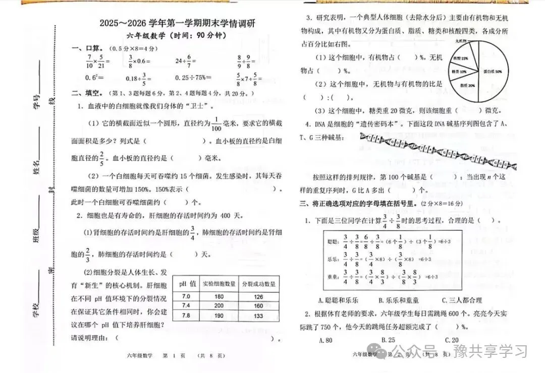 2026河南省郑州市中原区「伊河路小学」六年级上学期“期末”《数学》试卷