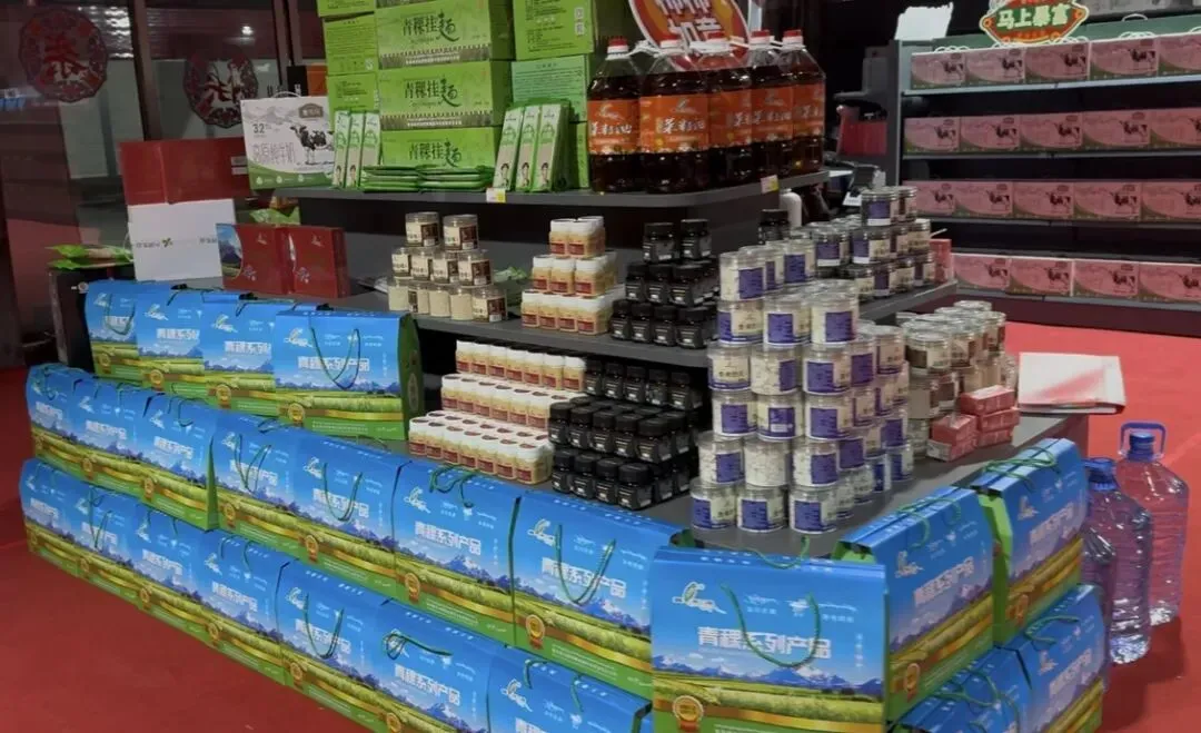 作为青海特色产品的重要展示窗口,郑州青海馆此次带来了满满的“高原诚意”。货架上整齐码放的青稞八宝礼盒,是青海人餐桌上的经典味道,以高原青稞为基底,搭配多种谷物精心调配,一口下去,是谷物的醇香与自然的甘甜;还有青稞肽、发酵蛹虫草青稞肽等深加工产品,将青海特色作物的营养与现代工艺结合,满足人们对健康饮食的新需求;此外,青盐、青油、藜麦、牦牛肉等高原特产也悉数亮相,每一款都承载着青海的地理印记与风土人情。