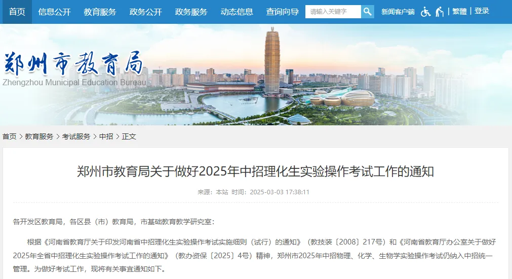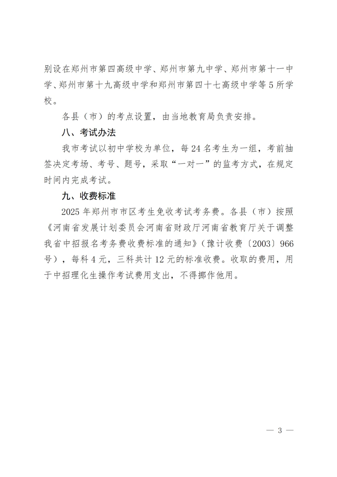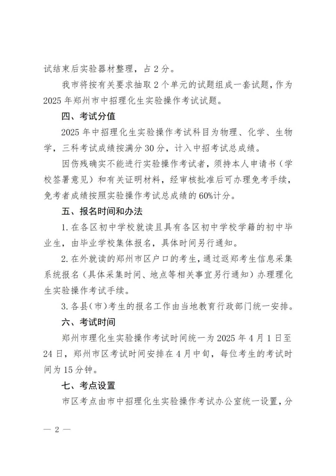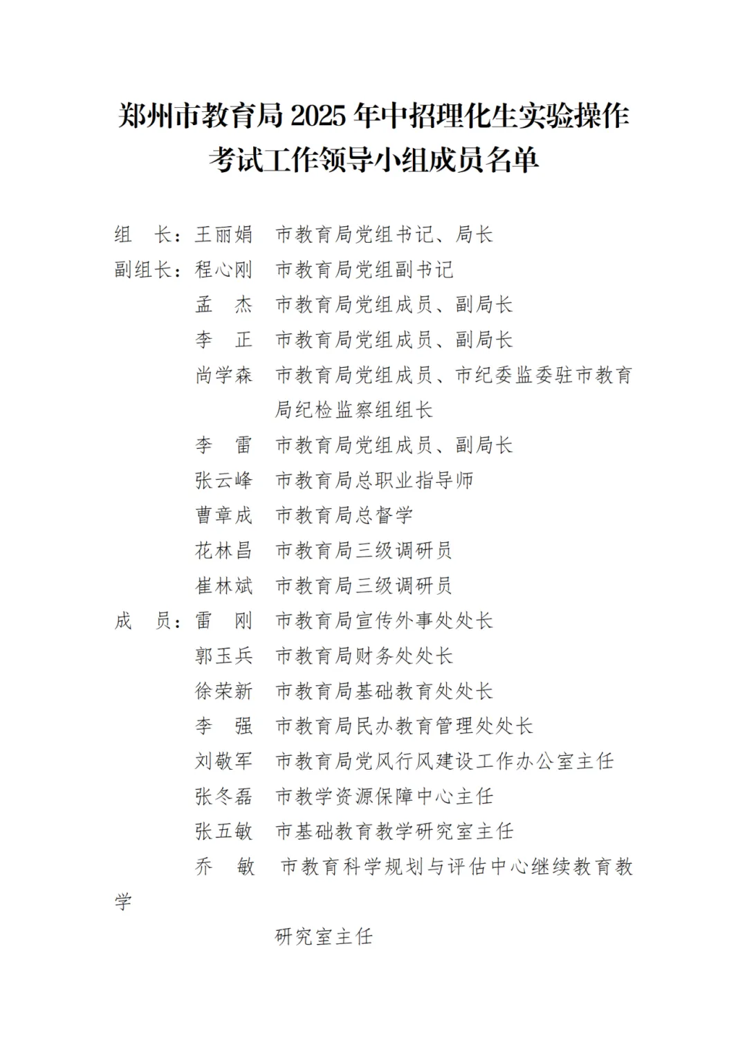 郑州市教育局关于做好2025年中招理化生实验操作考试工作的通知各开发区教育局,各区县(市)教育局,市基础教育教学研究室:
