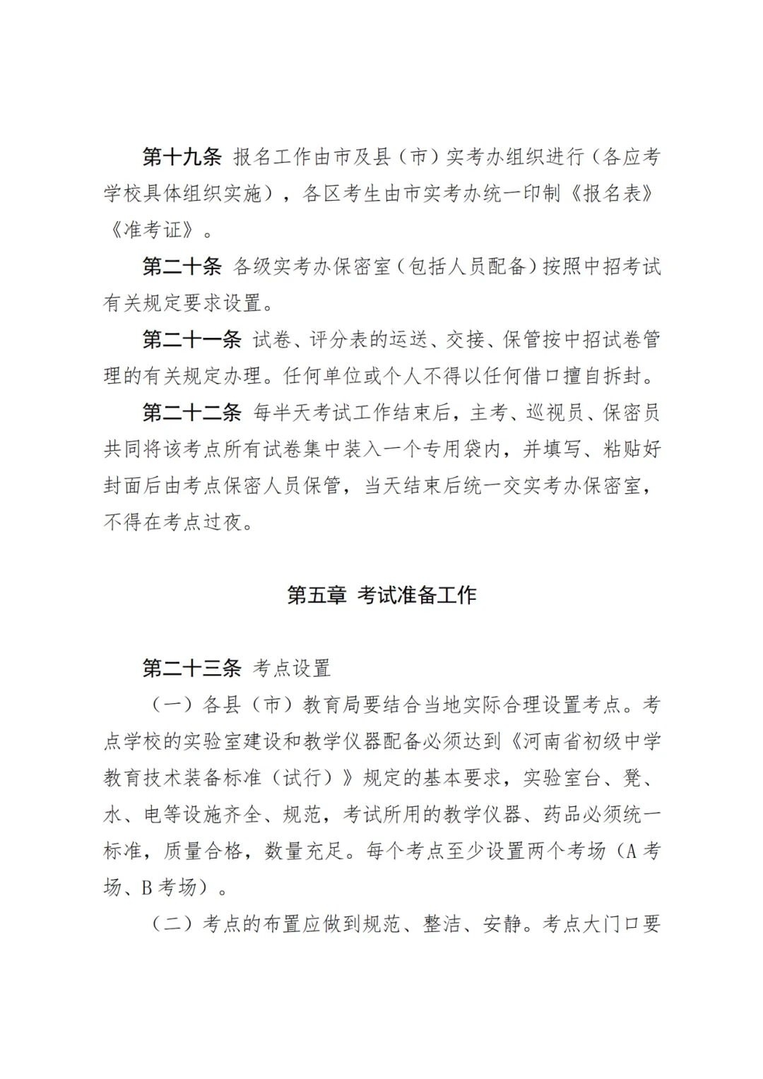 考生每24人为一组,考前抽签决定考场、考号、题号,在规定的15分钟内完成实验。具体办法详见《郑州市中招理化生实验操作考试考务工作细则(试行)》(附件2)。