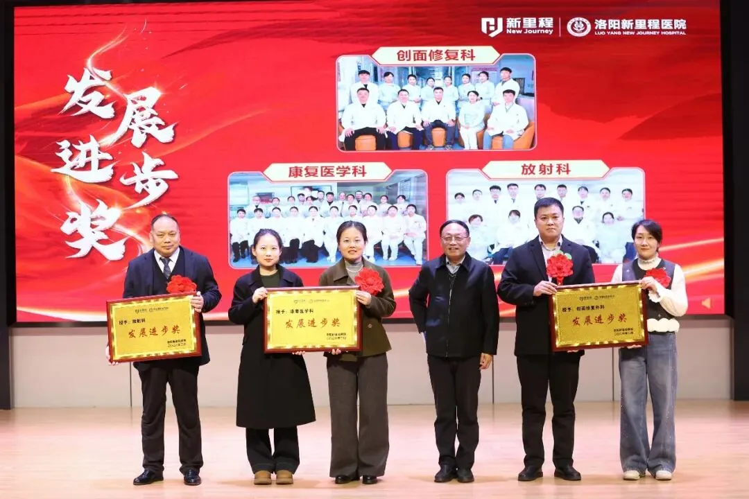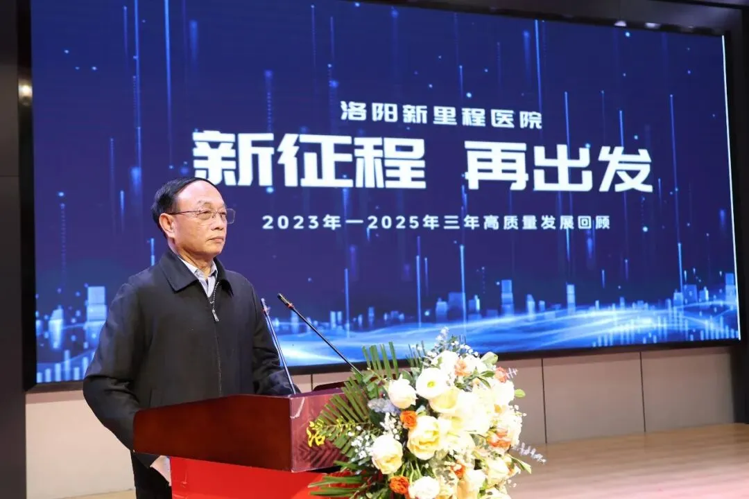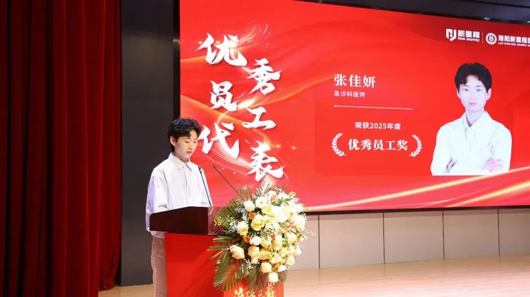 新里程健康集团副总裁陶琳首先代表集团,向受到表彰的先进集体和个人表示热烈祝贺,向为医院发展辛勤付出的全体干部员工致以诚挚感谢。并对医院年会“淬砺三载 再赴新峰”的主题给予肯定,高度认可医院在集团战略引领下,在医疗质量、学科建设、稳健运营等方面取得的显著成绩。