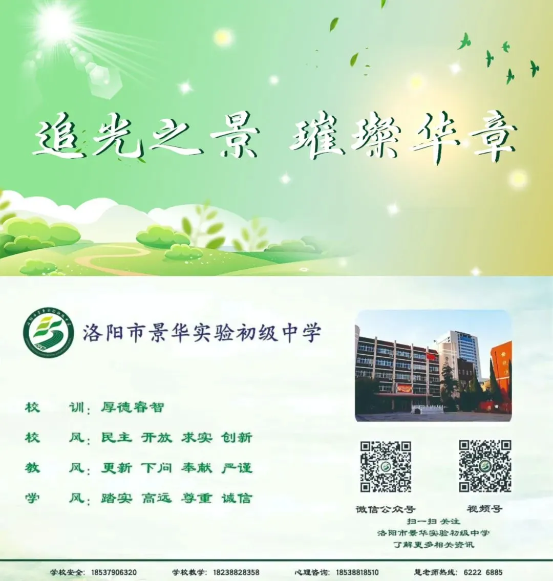 教育是一场向美而行的遇见,是一份逐光而进的坚守。新的一年,洛阳市景华实验初级中学全体教职工将继续做立德树人的“大先生”、学生成长的“引路人”、课堂变革的“先行者”,以更昂扬的姿态深耕不辍、聚力前行,共同推动学校各项事业再上新台阶!