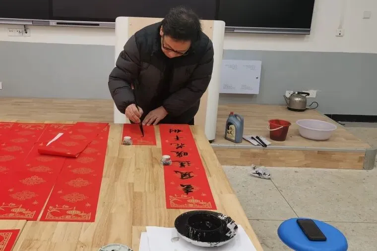 春联送福,翰墨传情。在新春佳节来临之际,为营造温馨祥和的节日氛围,为全体送上诚挚祝福,我校特举办“卷卷春联迎新年 翰墨飘香送祝福”写春联、送春联活动。邀请校内陈竞老师、何思峰老师、邢国涛老师等书法功底深厚、笔墨造诣精湛的老师们挥毫泼墨,将最真挚的美好期许融入笔墨之间,为校园增添浓浓的年味儿。