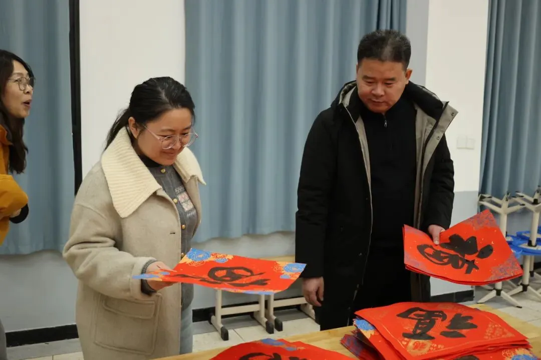 接过春联与福字的老师们笑意盈盈,连连称赞,表示手写春联每一笔都有温度、有情怀。
