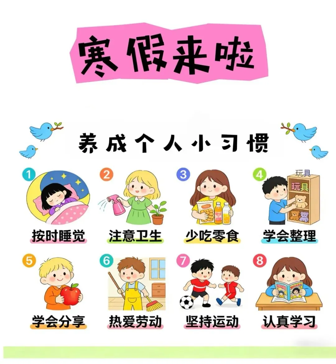 每天保证足够的运动时间,有利于孩子的身心健康,寒假期间,建议家长每天陪伴孩子进行适当的体育锻炼,强健身体的同时还能增进亲子情感。