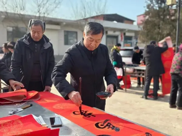 活动现场,书画家们挥毫泼墨,一幅幅吉祥春联、一个个饱满福字跃然红纸,免费赠予村民,浓浓墨香为乡村添满新春年味,现场一派祥和喜庆。