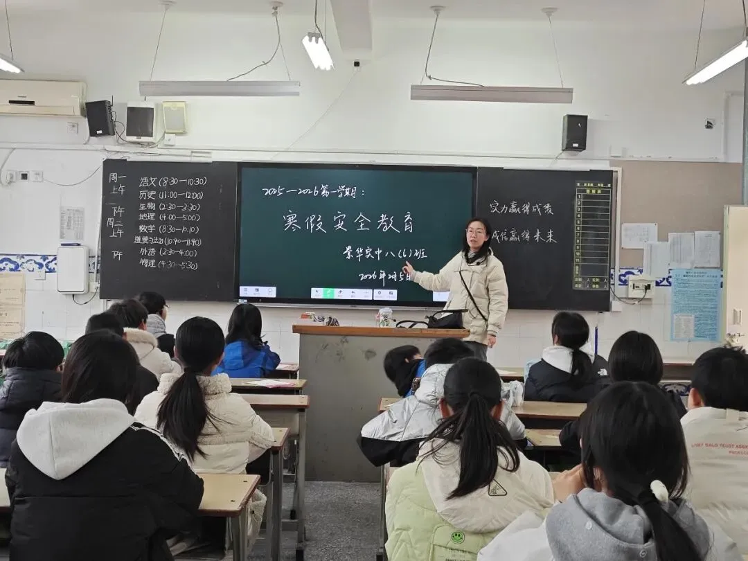 李海涛副校长宣读在本学期进行的跳绳比赛、拔河比赛以及庆元旦长跑活动中获得前三名的个人和班级。并呼吁全体师生在寒假期间继续保持良好的生活习惯,确保身体健康,并希望大家在以后继续积极参加学校组织的各项活动,促进德智体美劳全面发展。
