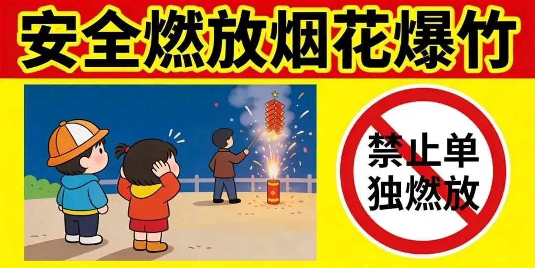 1.坚决不允许12岁以下孩子独自燃放烟花爆竹,要远离烟花爆竹燃放区域,不要凑热闹观看。