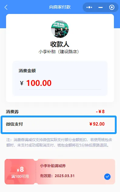 1.到达“小李补胎”门店消费;