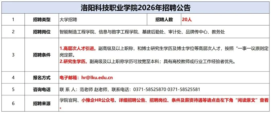 河南开放大学(郑州信息科技职业学院)2026年公开招聘20名高层次人才